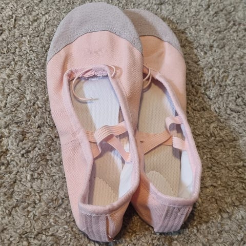 Selger ballett sko i str. 6 1/2 C. Kjøpt i England. Farge: hvit. Merke: Reed London. Størrelse er 38,5 / 39.