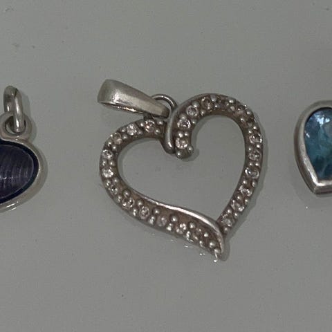 3 små lysblå hjerter til å henge på armbånd