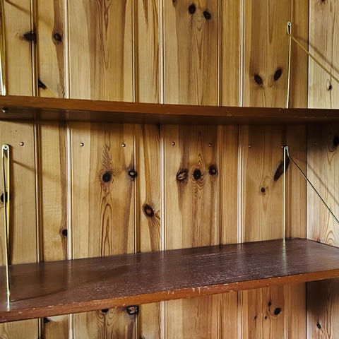 Gamal hylle i mahogni m/bøyle oppheng frå 60 tallet.