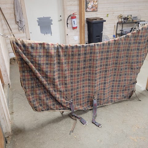 Var påtenkt unghest, men har sluttet med hest og selger derfor dette flotte dekkenet i fleece. Helt ubrukt, bare prøvd på. Str 145. Lapp henger fortsatt på. Om flere er interessert så gi bud. Sendes mot frakt.