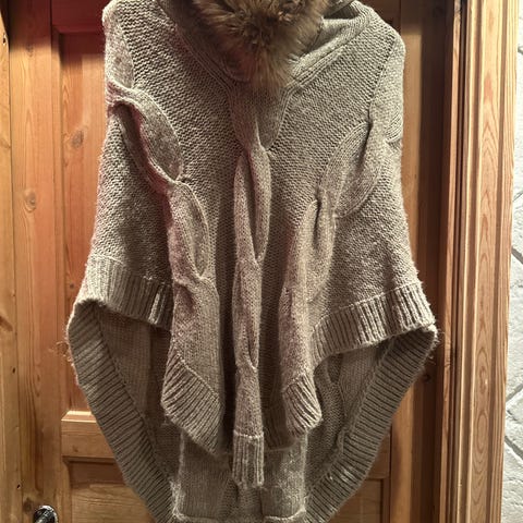 Mørkebå imitert semsket skinn (veldig myk) poncho fra Ane Mone. One Size. Lite brukt. Nypris 1999,-. Selges for 749,-