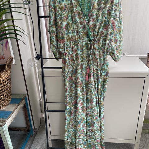 Flerfarget lang sommerkjole stroppene kan reguleres