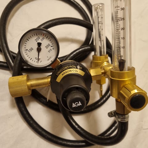 Tigex reduceringsventil med flödesmätarrör för skyddsgassvetsning eller rotgasskydd. TIGEX är speciellt avsedd för arbeten där det krävs en mycket noggrann avläsning av gasflödet.
