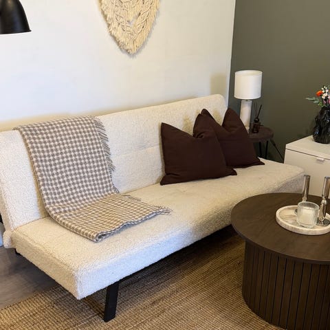 3-seter sovesofa i lysegrått polyester-stoff selges. Sovesofaen oppfattes som ubrukt da den kun har stått i et showroom og aldri blitt brukt annet enn til visning og foto. Sovesofaen har sorte plastbein. Sofaen har ramme av treverk samt sponplater og mdf plater i ryggen. Den har en fast sittekomfort. Pu-skum i putene. Plassbehov/størrelse 191x72x73cm. (BDH) Soveareal:190x117cm. Liggehøyde: 38cm. Sofaen selges grunnet plassmangel. Den kan hentes i Moss.