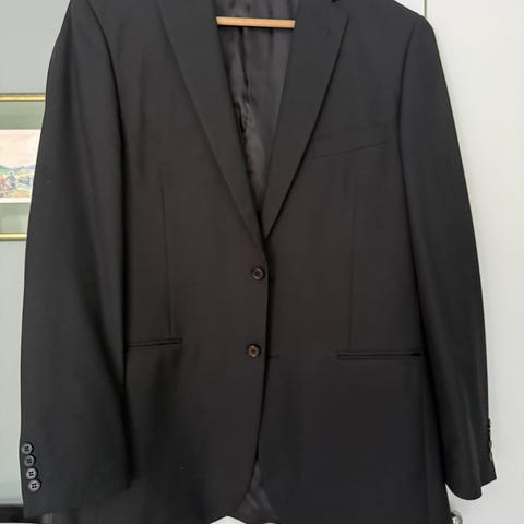 Svart dressjakke fra Dressmann i str. 56 selges. Brukt et fåtall ganger og fremstår som hel og pen.