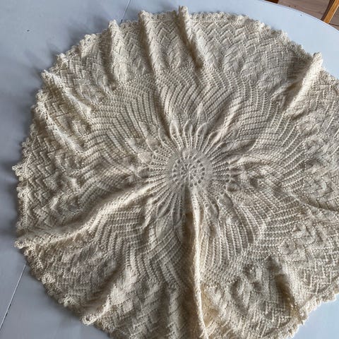 Bomull hvit/beige med flekker. Vasket med flekker går ikke bort