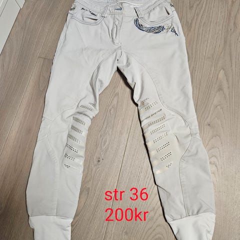 Løse leggings som brukes over ridesko som alternativ til ridestøvler.