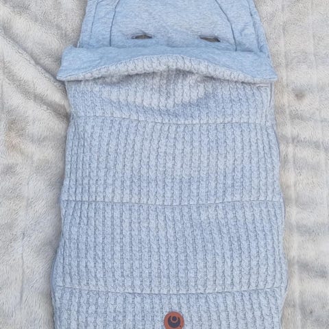 Hjemmelaget vognpose vinterpose i Marius-mønster, brukt fra barnet var 4 mnd til barnet var 2 år, brukt i både bag og sportsdel.