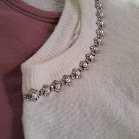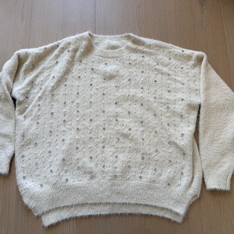 Nydelig genser med perler. Mangler et par på den ene armen,men ikke noe man legger merke til. Myk og god på. Størrelsen S/M