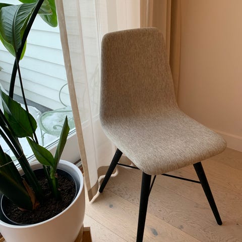 Pent brukt nydelige Bolia spisestoler i eik med stålben selges