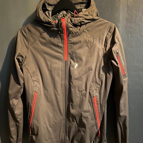 God og fin jakke, med glidelåser i sidene for ekstra lufting. Sort og grå farge.