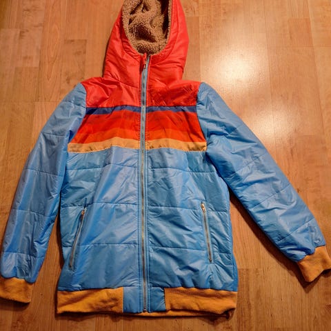 Knallkul urban jakke med fleece i hetten. Den ble dessverre litt for trang syns jeg og mye styr å sende tilbake. Derav selges den.