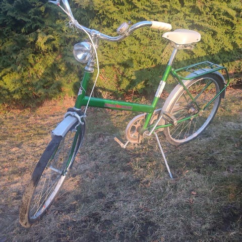 Fin grønn, klassisk retro sykkel fra DBS. Herresykkel, vil tro den passer folk på rundt 185cm. Sykkelen har merket De Luxe.