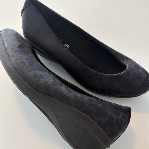 Nye fine blå Gabor sko med kilehel i str 37 selges for 150. . Brukt en gang blir for trange. Litt skimmer i blå fargen. Litt liten i størrelsen.