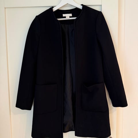 Lang svart jakke/ cardigan fra H&M. Har ikke knapper/knyting. Nydelig over kjole på litt kaldere sommerkvelder.
