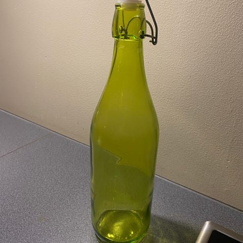 Drikkeflaske laget av gjennomsiktig hardplast med gummipakning