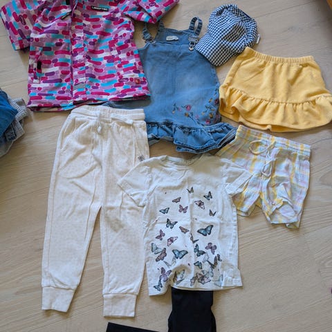 Klespakke - størrelse 98/104. Alt er i veldig god stand - ingen flekker eller skader 🙂 Det perfekte settet for varme og kjølige sommerdager!