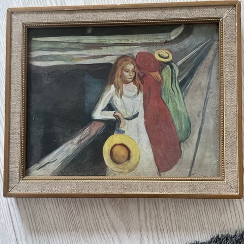 Reproduksjon/kopi av Edvart Munchs Blue Nune fra 1921. 27x35cm