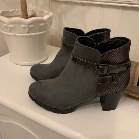 taupe ankle boots / støvletter fra DinSko i størrelse 39 med glidelås. brukt en gang. Ble litt for små, så får dessverre ikke brukt de videre.