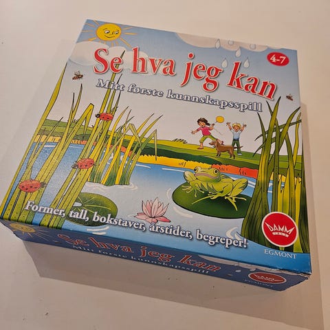 Barnets første brettspill. Lær om årstider, ukedager, farger, begreper, tall,mengde, språk og ord.