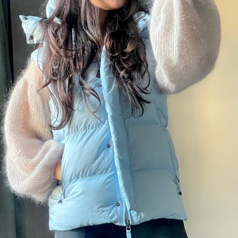 Junge Ødegaard Dame vest i størrelse 44, farge grønn. Vesten har hette og glidelåslommer. Den er foret med oransje fôr og har quiltet design. Egnet for kvinner og kan brukes som et ytterplagg i kaldere vær.