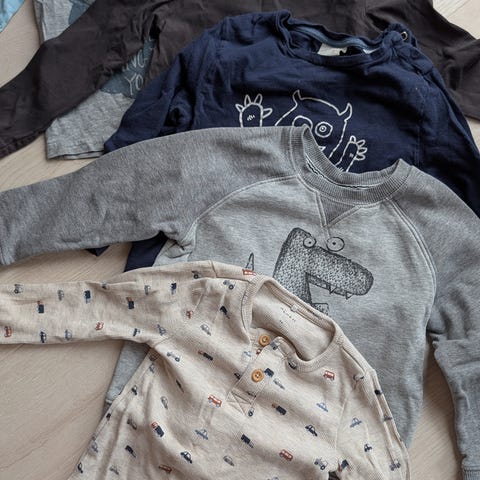 Pent brukt gensere fra name it str 98. Ene er penere Cardigan/strikkejakke. Den er kun brukt et par ganger. Se gjerne andre klespakker