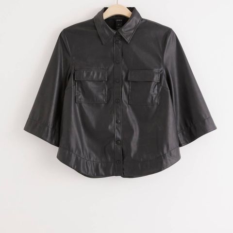 Kort skinnskjorte i imitert skinn med trykknapper✨ Str S