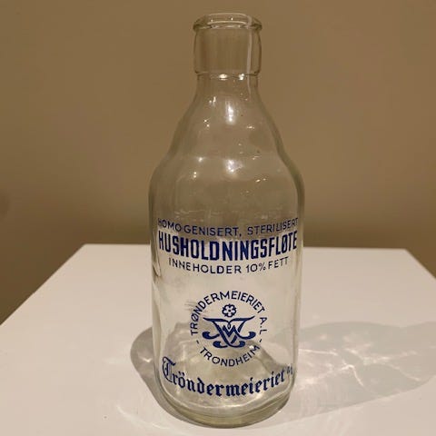 En vakker gammel medisinflaske fra Stjørdalens Apotek, Stjørdalshalsen, Joh. Øvstaas. Høyde ca 17 cm. På etiketten står det ' 1 spiseskje 3 ganger daglig' og noe mere tekst. Bruksspor og patina på etikett og flaske. Litt misfarging innvendig øverst på toppen, kan kanskje fjernes, da det ser ut som spor etter en kork. Se bilder for stand.