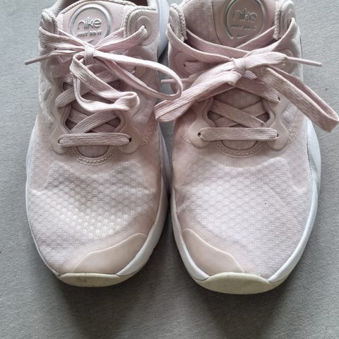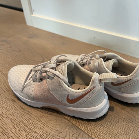Nike fritidssko str 39, offwhite med rosa detalj, samt Nike-merke i roségull. Comfort footbed såle, gode fritidssko. Pent brukt.
