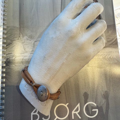Kunstferdig utført, en tidlig utgave av Bjørg sine kreasjoner. Det kan man se på et lite vedheng med bokstaven «b» ved låsen. Lengde uten anheng ca. 60 cm.