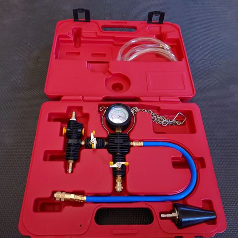 Verktøyet er for testing av kjølesystemet for å oppdage eventuelle lekkasjer. Kommer med assosierte adaptere for radiator og ekspansjonstank for en bred støtte av kjøretøy.