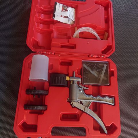 Verktøyet kobles til ekspansjonstank for å drive luft ut av kjølesystemet ved hjelp av en luftkompressor og er ment å forhindre luftlommer i systemet. Kommer med universal kon som passer det meste.