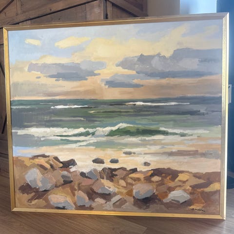 «Grå himmel, Jæren» av Frank frantzen selges fra besteforeldres samling, sett over av takstmann. Størrelse 50x60 cm