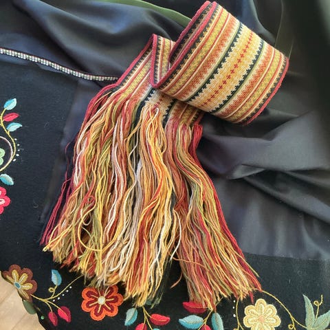 Kjøpt i Bø i Telemark hos Almankås. Håndvevd av høy kvalitet. Nytt belte koster nå over 10 000 kr så her får du et godt kjøp. Varer i generasjoner. Belte er vevd hardt og fint.
