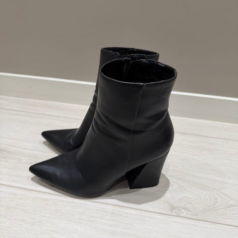 Selger disse superkule og helt nye ankelstøvlettene fra Zara i størrelse 38. Skoene har en unik kombinasjon av den klassiske støvlette-formen og en dristig åpen tå (peep toe).