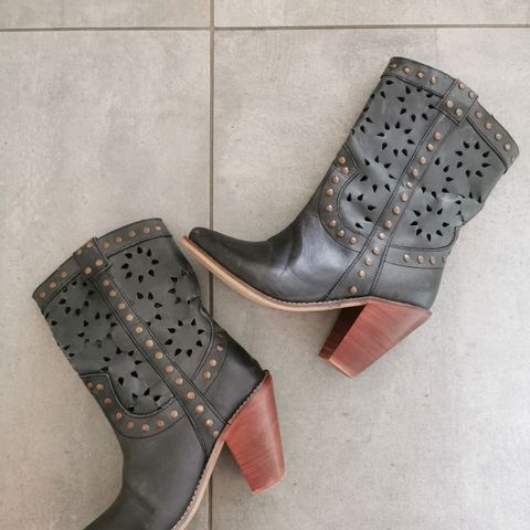 Veldig fine støvler fra Lost Ink. Litt bruksmerker rundt skoene som sees på bilder. Men kan dekkes enkelt. Str 38. Passer fint til jul, julebord og nyttår fest.