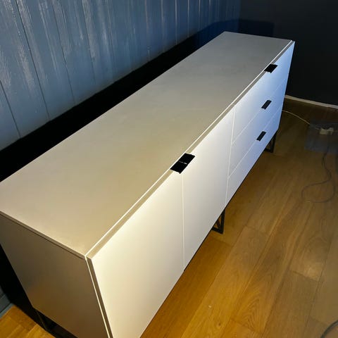 Hel og pen skjenk/kommode i furu fra Skeidar. Med overdel/topp med hylle og speil. Pent og praktisk møbel til pynt og nytte.