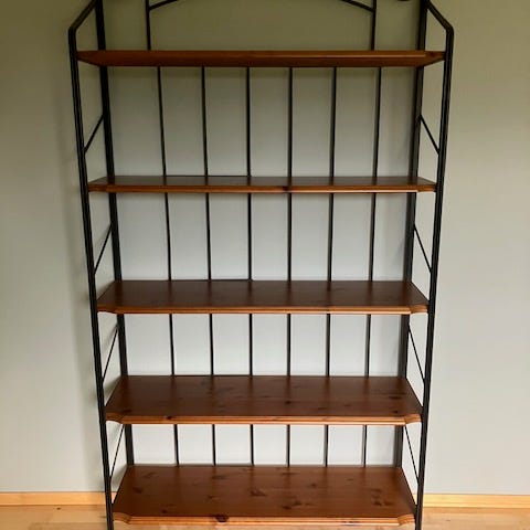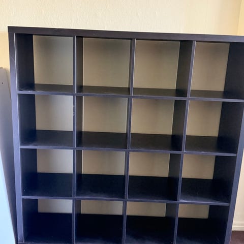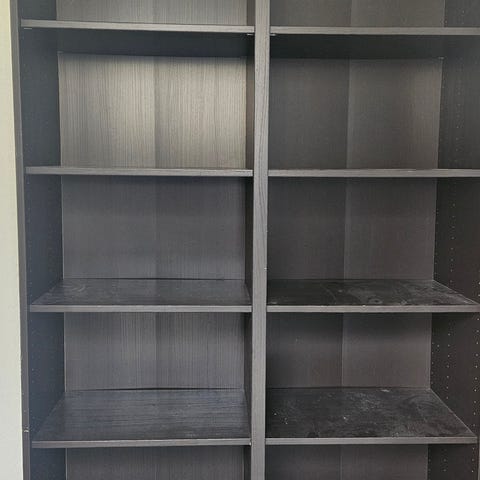 To meget flotte dekorative hylle-seksjoner med 9 hyller i mørk brun lakkert tre