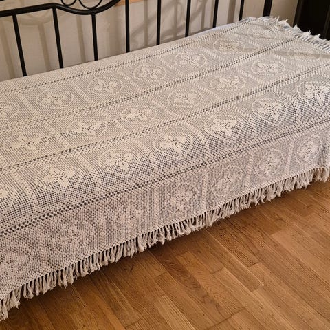 Håndheklet teppe selges. Mål: 80 × 114 cm