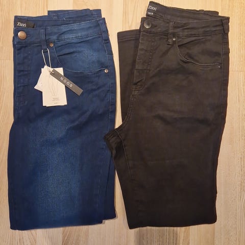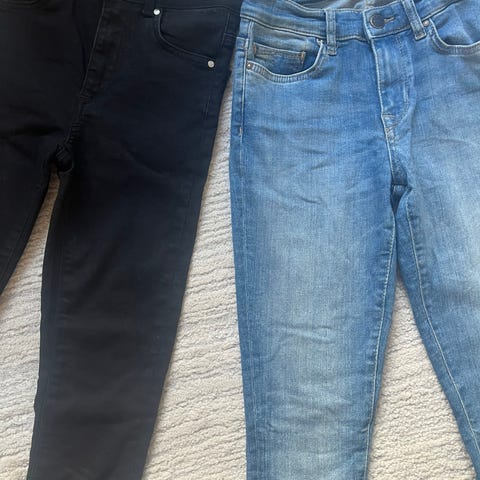 Str W27. 1 er Isabella perfect jeans svart farge, og 1 er Object collectors item blå farge. (low waist).
