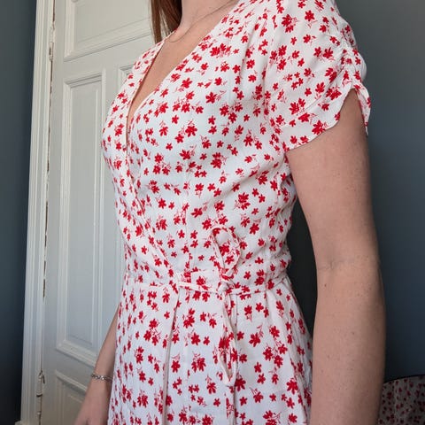 Herlig farge for sommeren. Lite brukt. Har glidelås i siden og knapper foran.