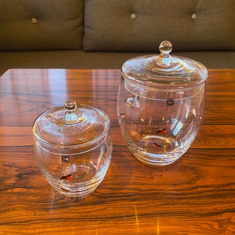 Gilde er et morsomt tilskudd på et dekket festbord. Med Gilde drammekaraffel får hver kuvert sin egen karaffel, og drammeglasset er utformet slik at det ikke kan settes på bordet, men må stå som en kork i karaffelen. Hver karaffel er på 20 cl og kommer i pakninger på 4 karafler. Design: Inger Magnus.