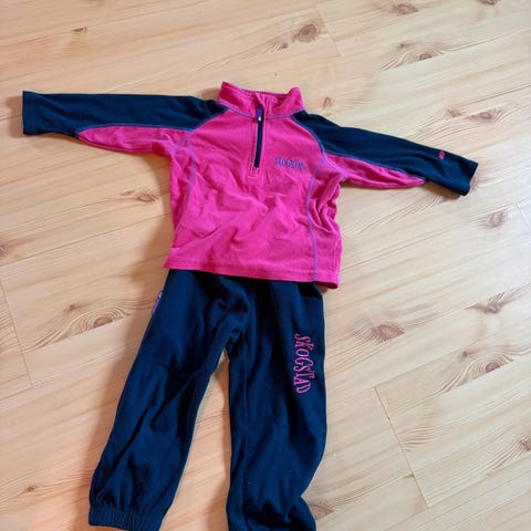 Klespakke inkluderer 1 fin jakke med flis, 1 boblevest, 2 flis sett, 2 tynne bukser, 1 t-skjørte, 2 gensere