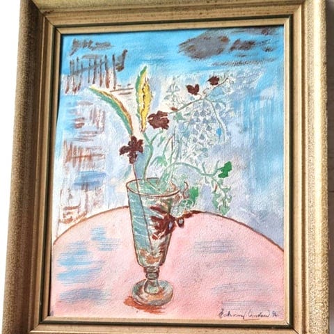 Tittel: "Terra/Jord." (2001). Signert oljemaleri i jordfarger på linlerret. Format: 85x55cm. Kr.3500