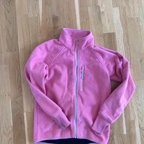 Selger denne rosa jakken som passer til et barn på 7 år. Trenger en vask.