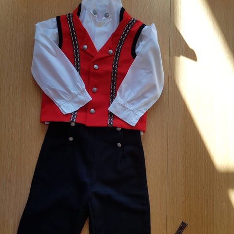 Bunad til gutt, er en liten flekk på buksebenet, ikke forsøkt å vaske bort.