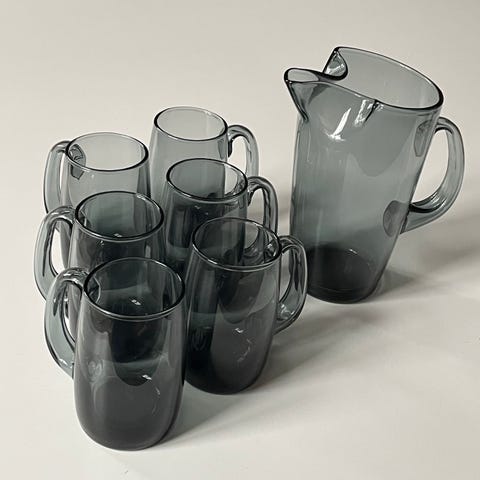 Hadeland Kollen : 6 drammeglass og 1 karaffel som mangler kork