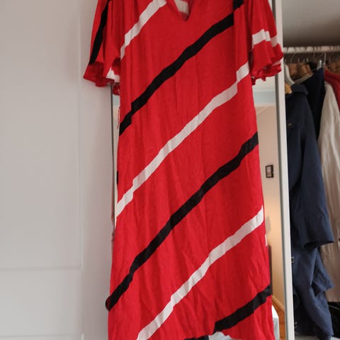 Lang, lett figursydd modell, noe stretch i stoffet.