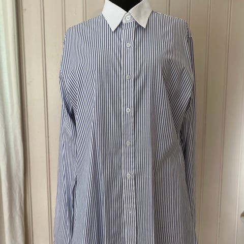 Stripete skjorte i str 40 og hvit singlet i str m selges samlet til 150,-