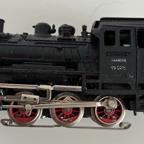 Sett med alle deler: Damplok BR 89, 4503 lavkarmet godsvogn, 4513 tippvogn, skinneoval og trafo. Noen brukerspor, alt er helt og i orden.